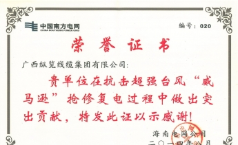 全國電線電纜產(chǎn)品質(zhì)量監(jiān)管AA級企業(yè),全國重合同守信用單位,廣西“二十五”電線電纜產(chǎn)業(yè)重點扶持企業(yè),國家強制性產(chǎn)品CCC認(rèn)證